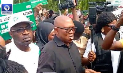 The 2023 presidential candidate of the Labour Party, Peter Obi, on Monday joined protesters at the National Assembly in Abuja under the banner of the “Occupy...